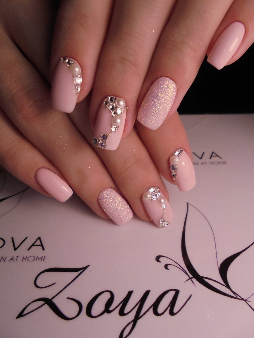 Нежный маникюр со стразами