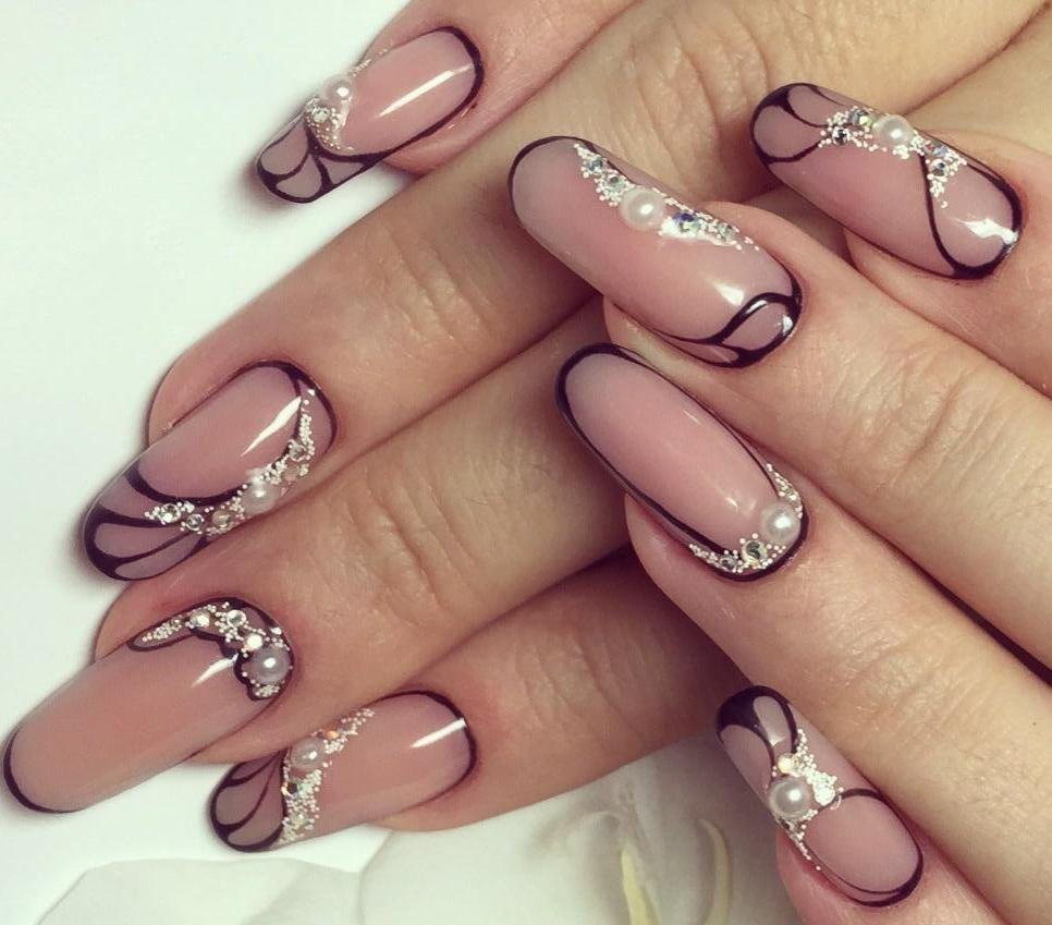 Маникюр со стразами и бульонками