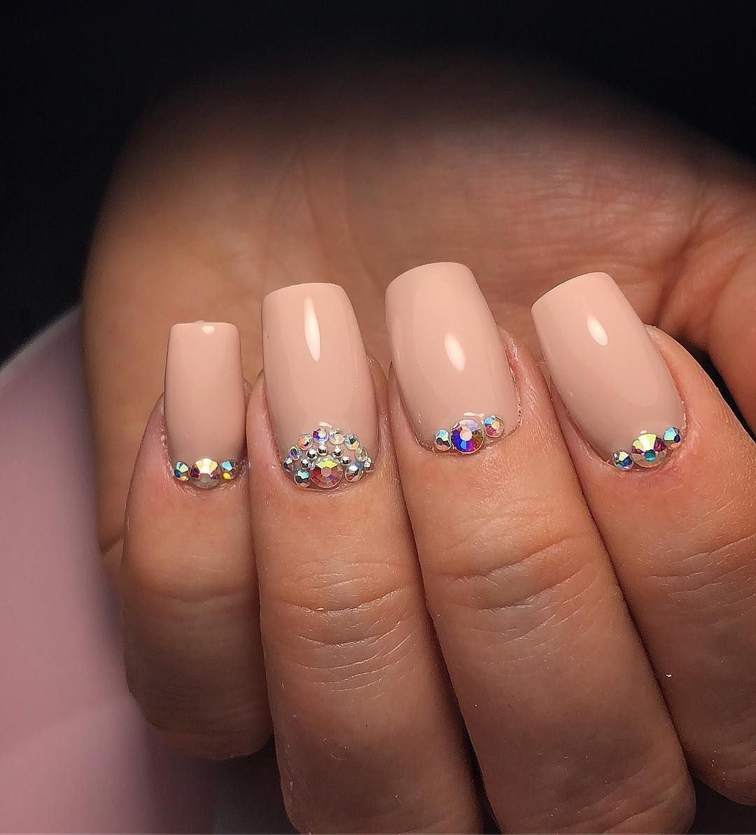 Однотонные ногти со стразами