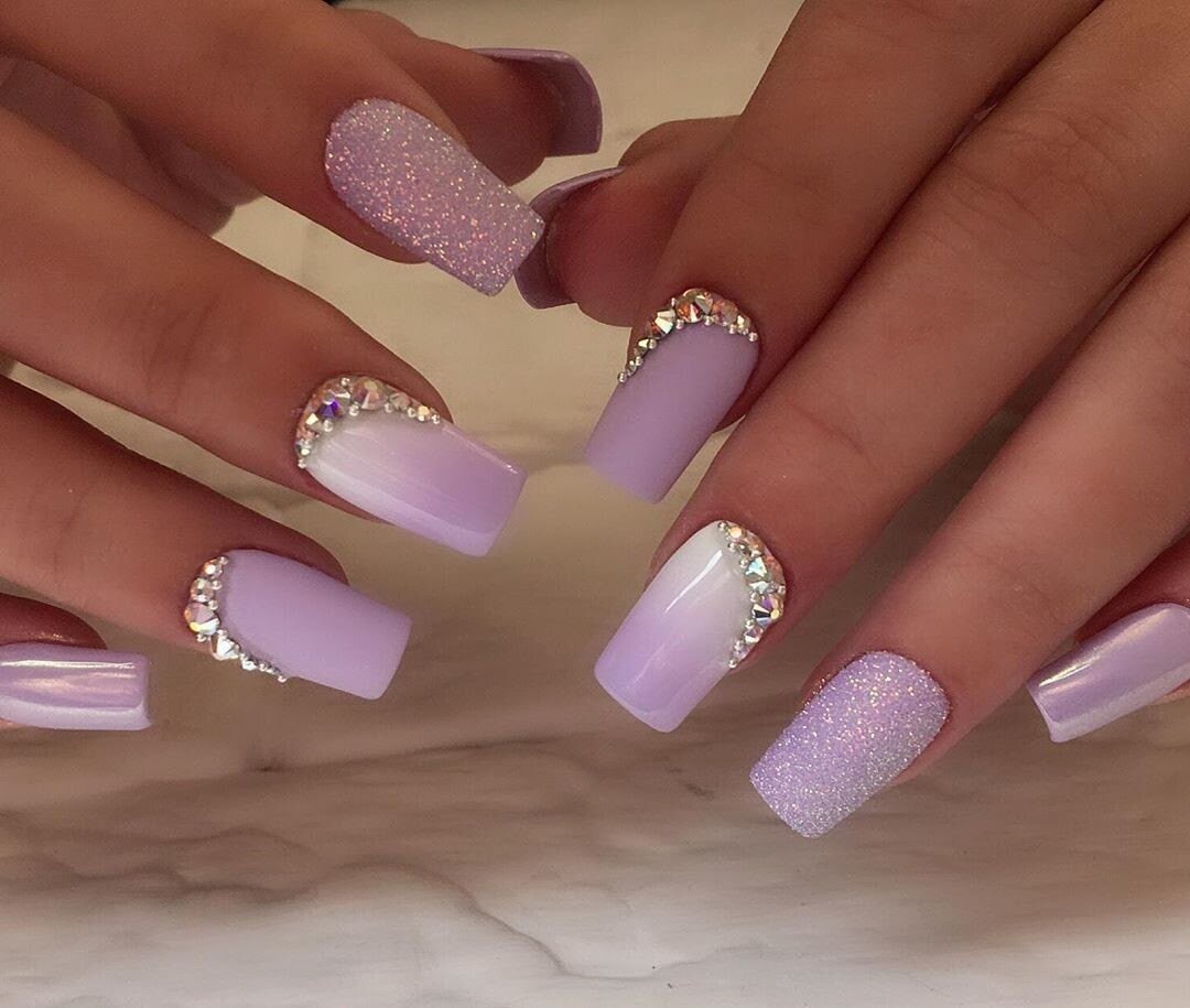 Фиолетовый маникюр с блестками