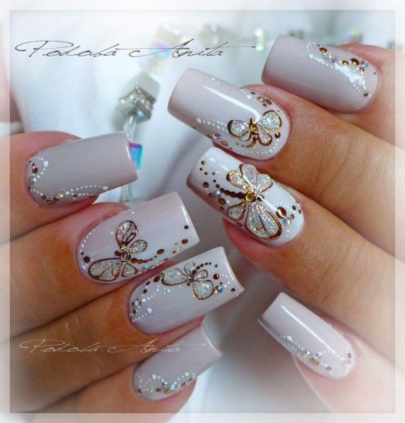 ![Бабочка на ногтях со стразами]()