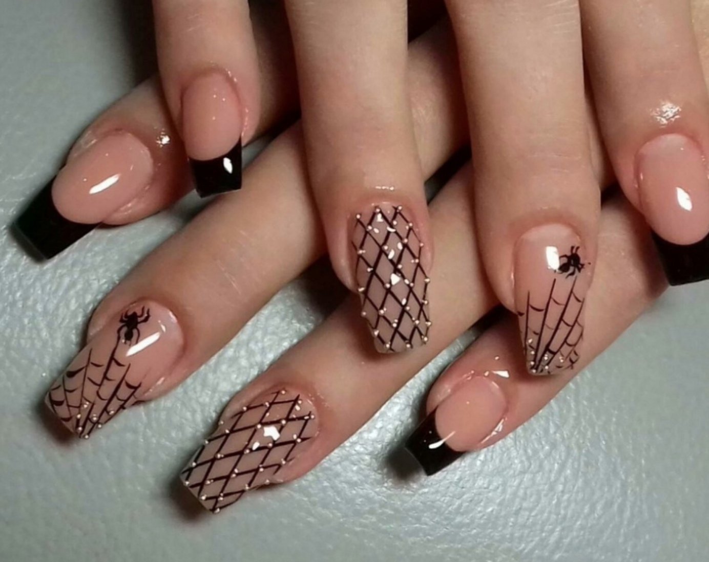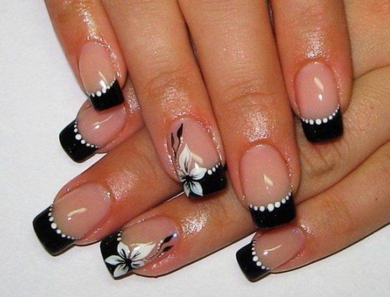 Наращивание ногтей черный френч