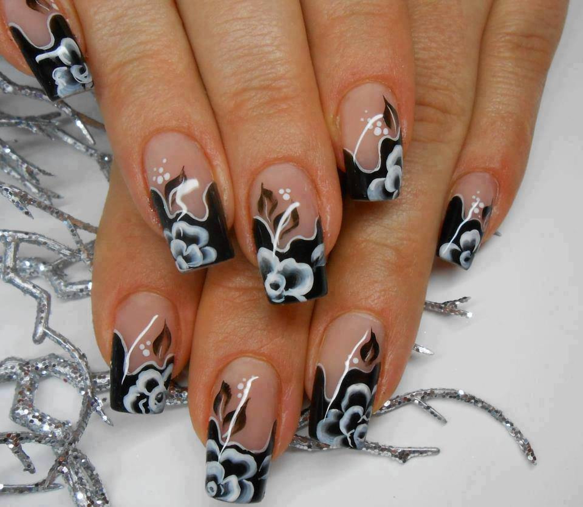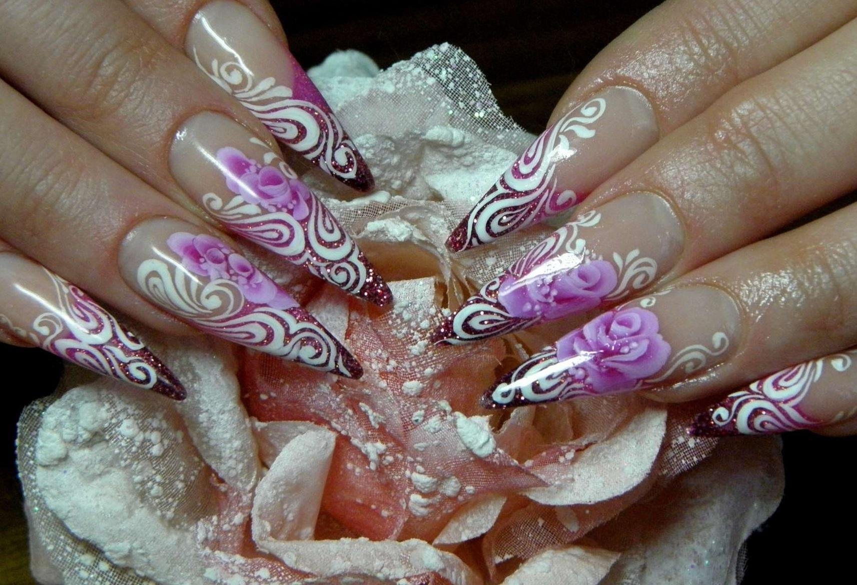 ![Наращивание ногтей с узорами]()