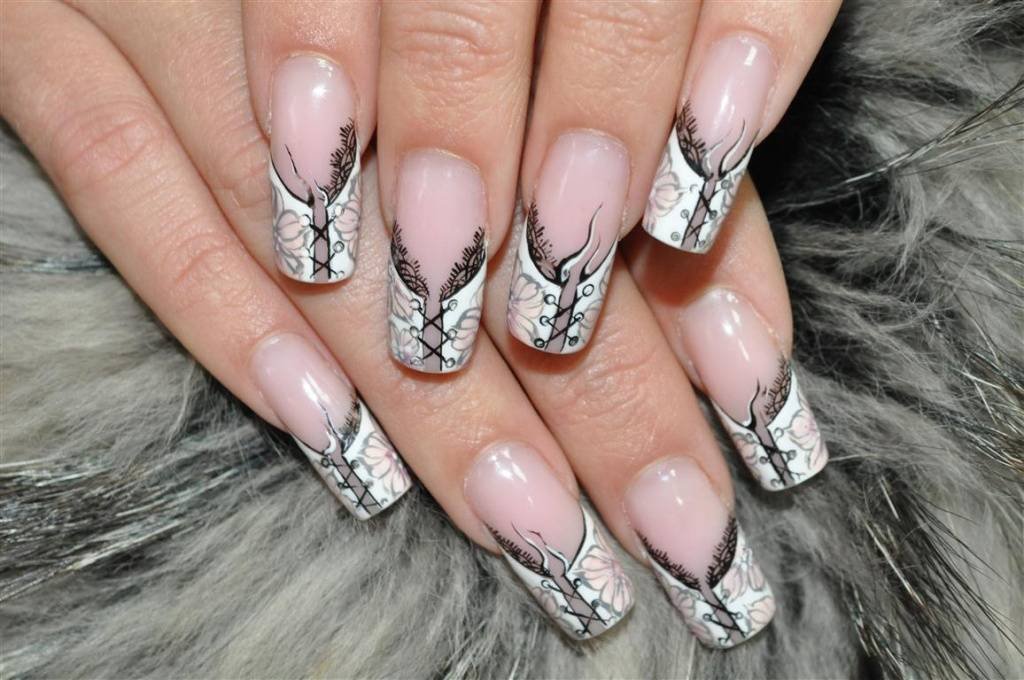 Нарощенные ногти френч с рисунком