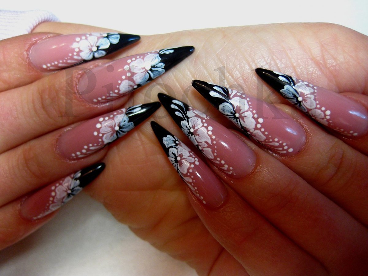 Красивый маникюр на острые ногти