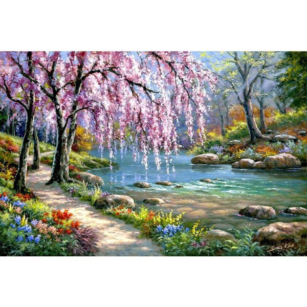 ![Алмазная живопись набор алмазной вышивки Сакура у реки (аж-1328) 40х30 см]()