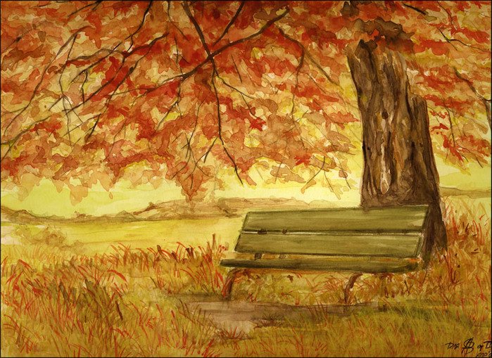 Осенний пейзаж акварелью для начинающих