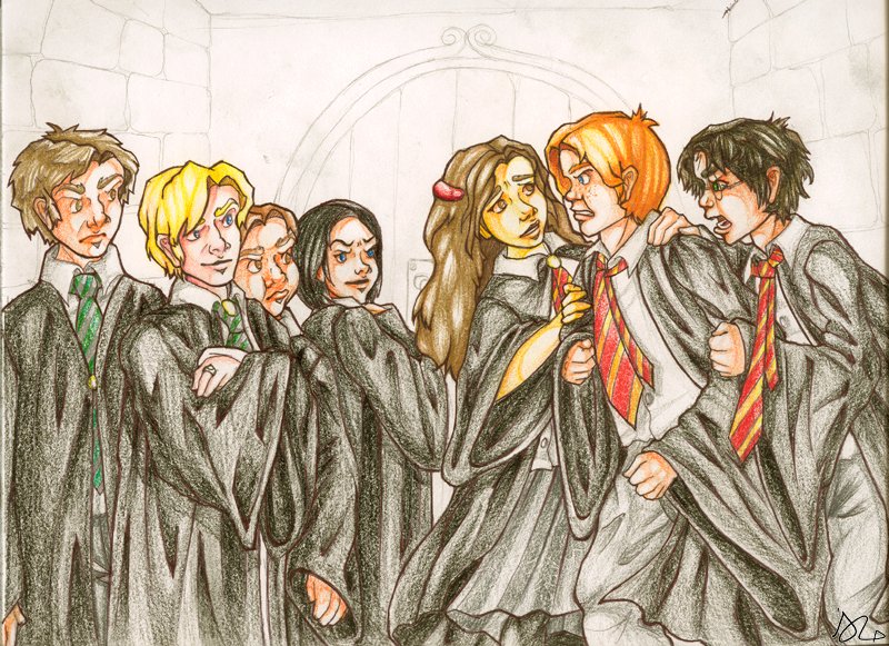 ![Срисовки Гарри Поттера Рона и Гермионы]()