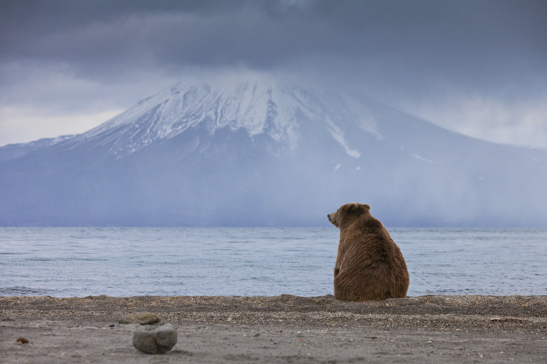![Бурый медведь на берегу курильского озера]()