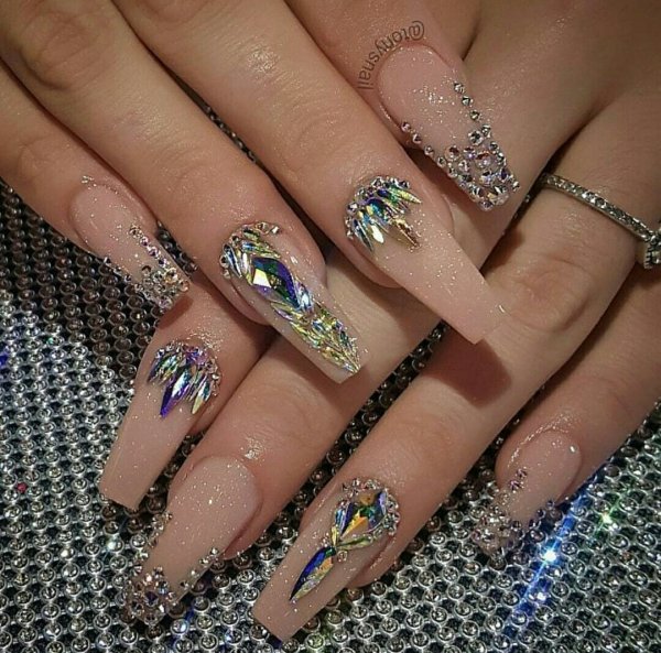 Маникюр со стразами и блестками