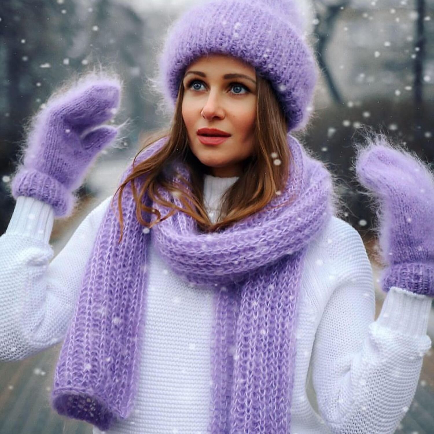 ![Вязаные шапки из мохера для женщин]()