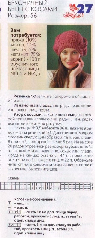 ![Вязание спицами берета с описанием и схемами бесплатно]()