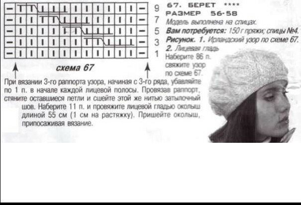 Вязание спицами берета с описанием и схемами бесплатно