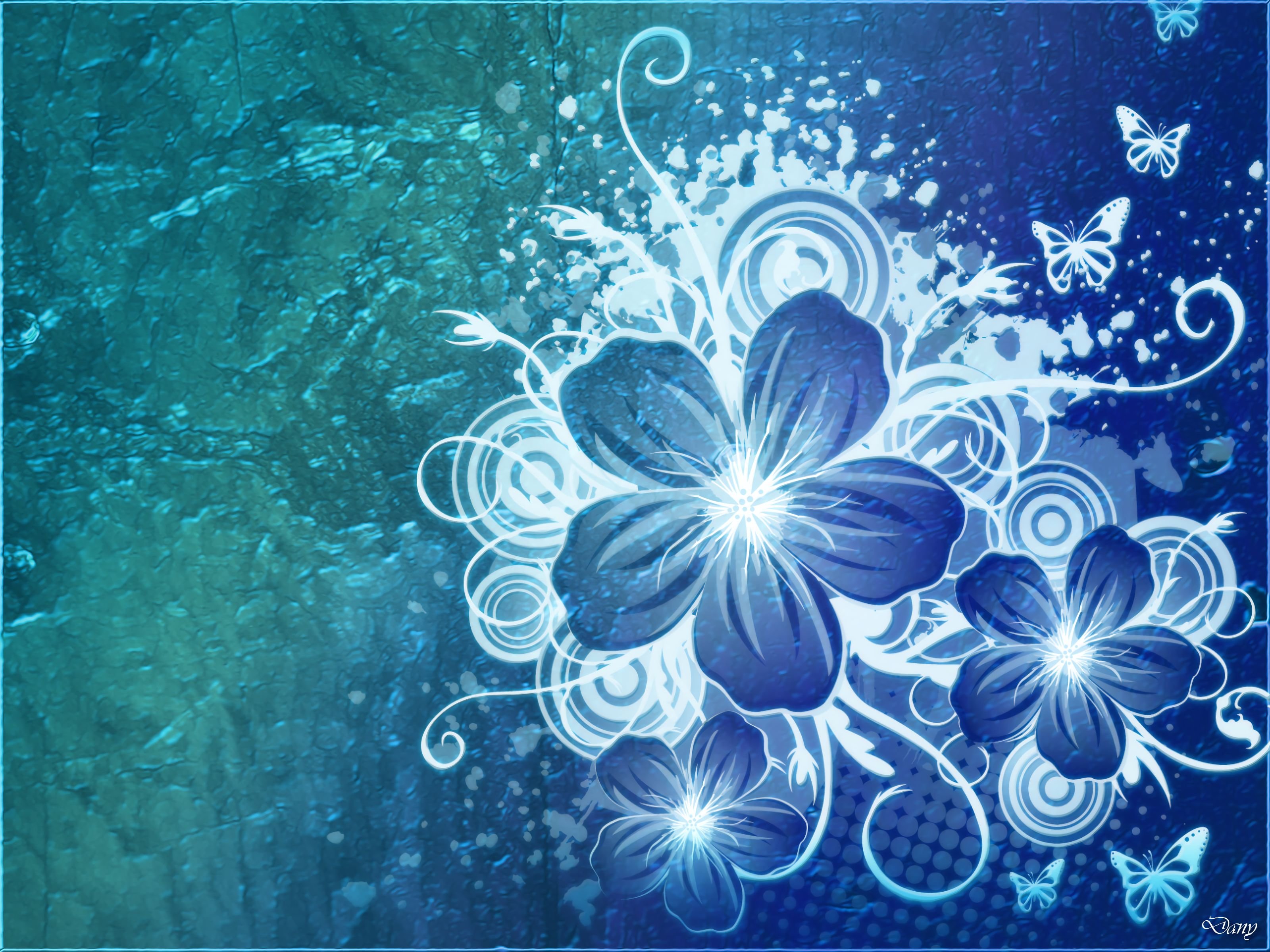 ![Голубые абстрактные цветы]()