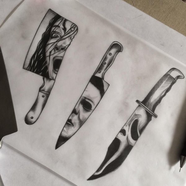 Эскизы татуировок ножей