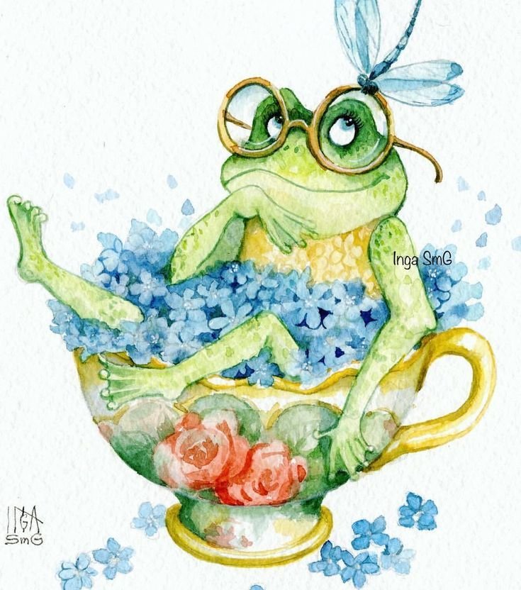 ![Лягушка акварелью]()