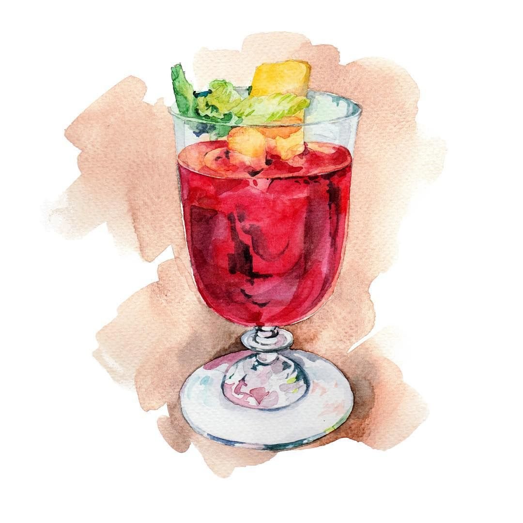 ![Коктейль акварелью скетчинг]()