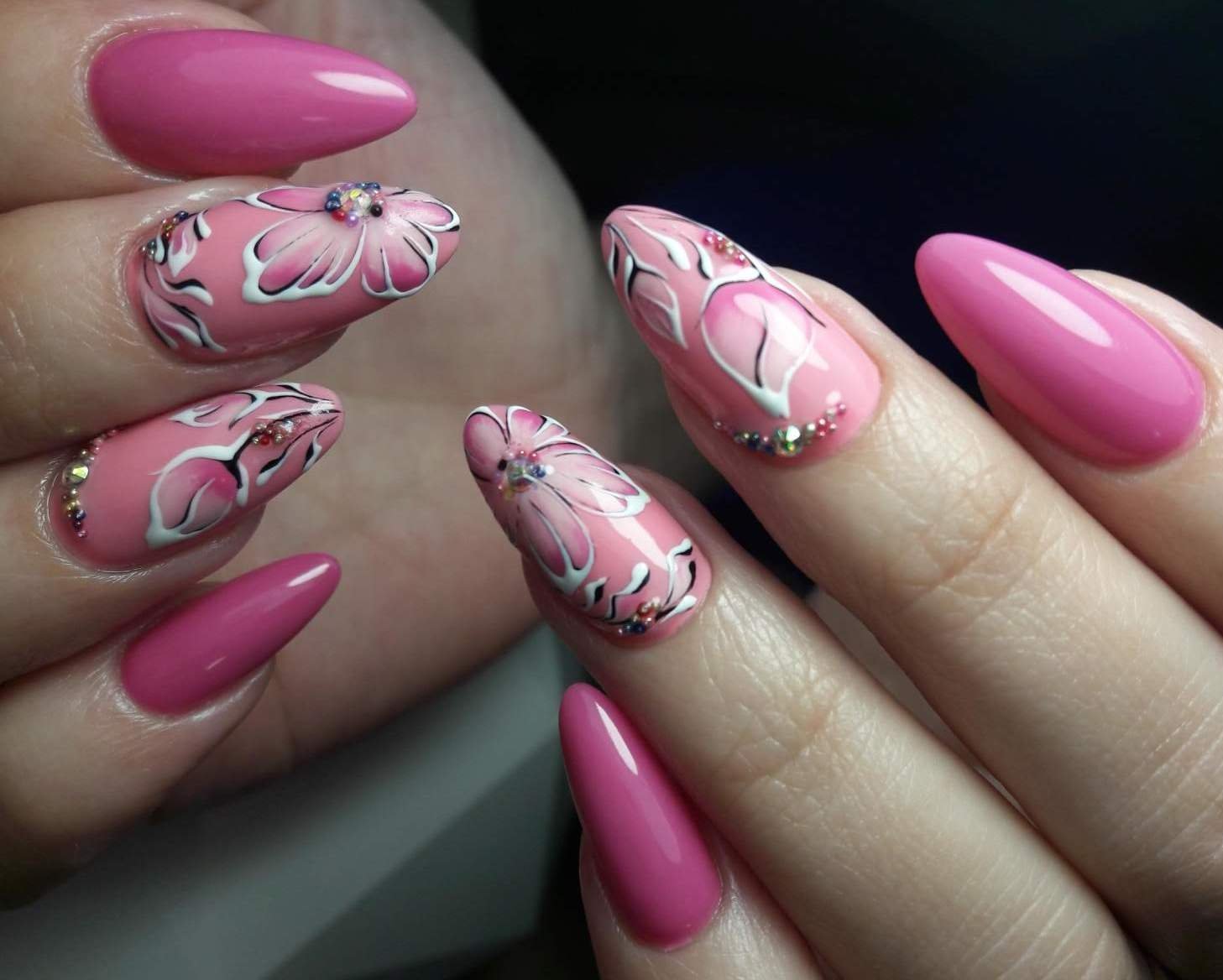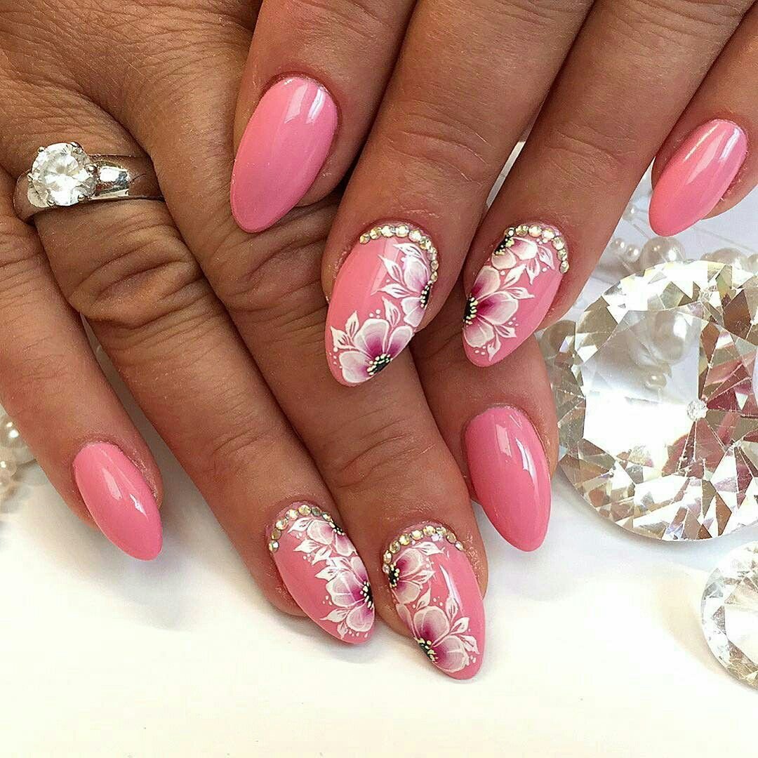 Ногти розовые с цветочками