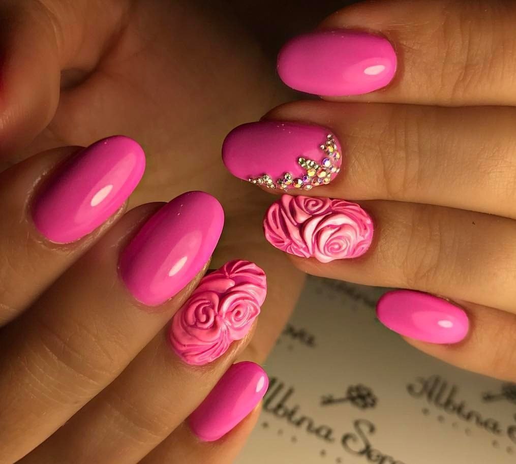 Яркий розовый маникюр