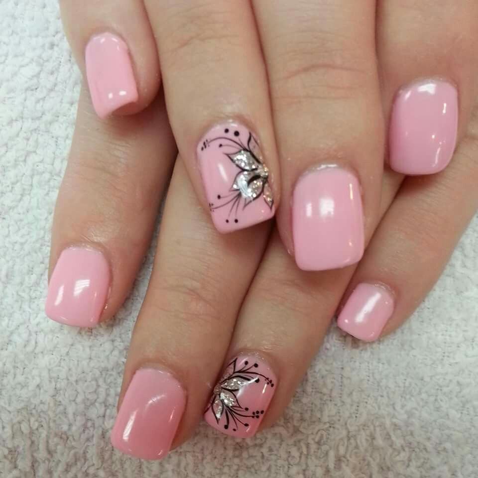 ![Ногти розовые с цветочками]()