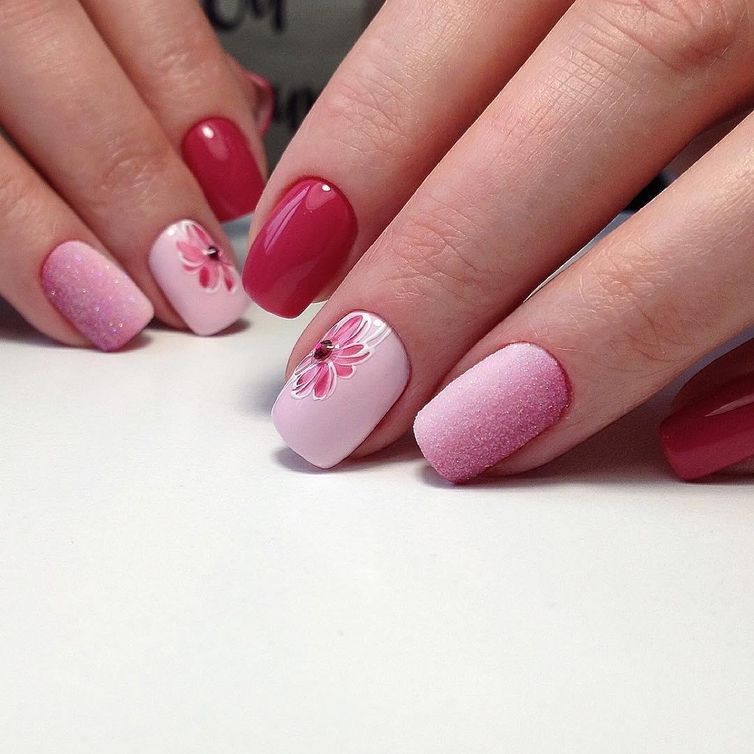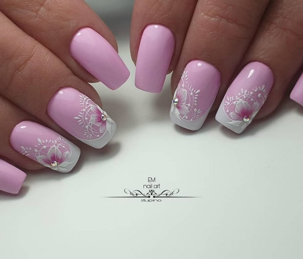 Маникюр розовый с цветами