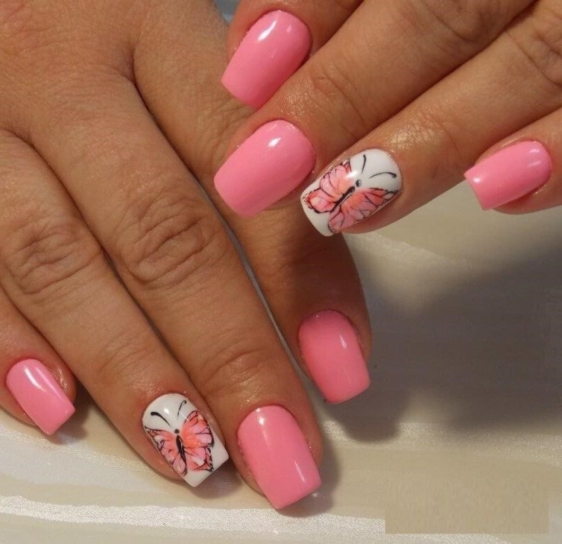 Розовый маникюр на короткие ногти
