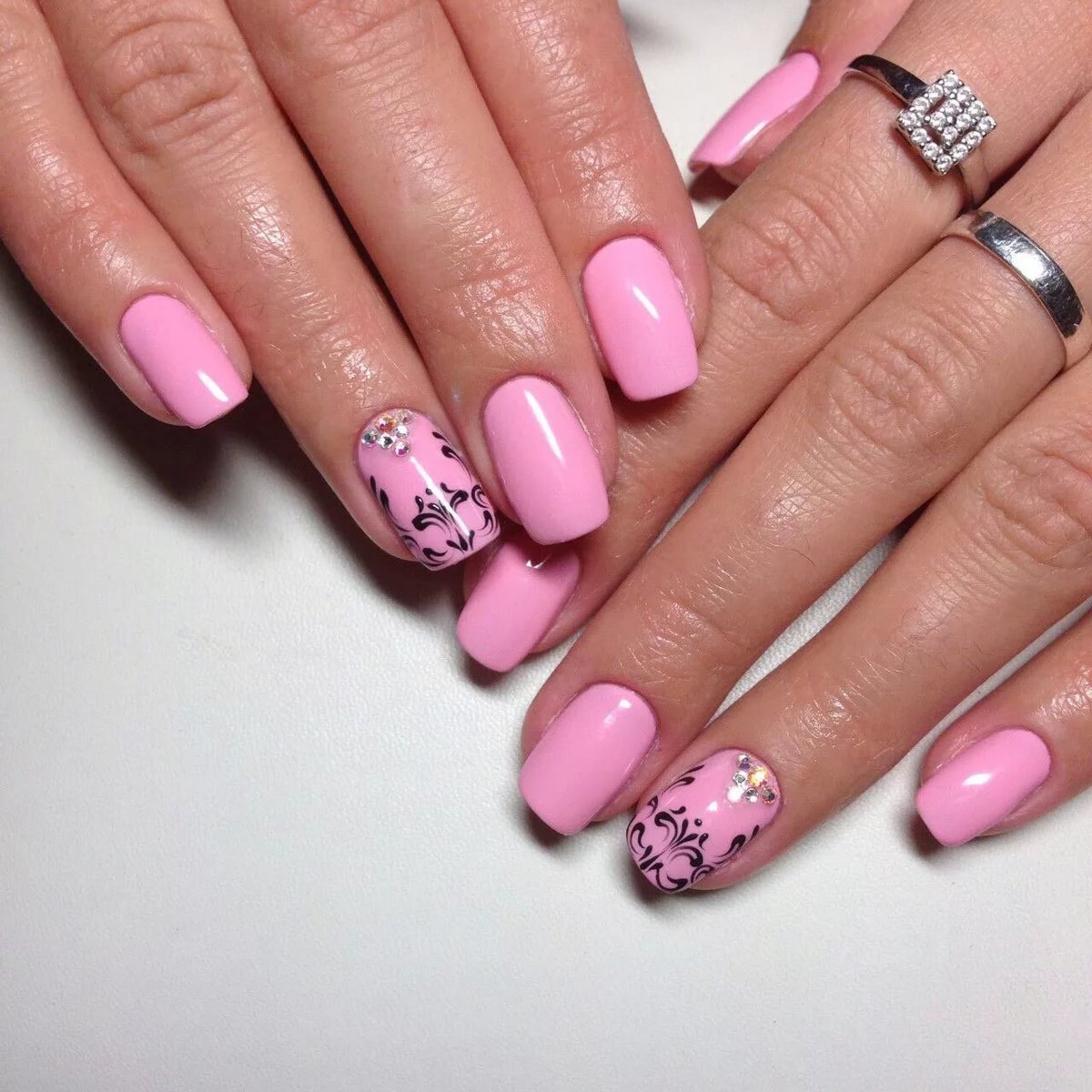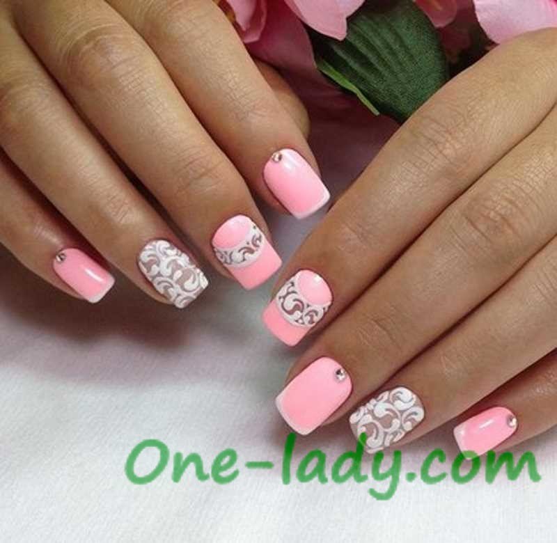 Розовый маникюр с узором