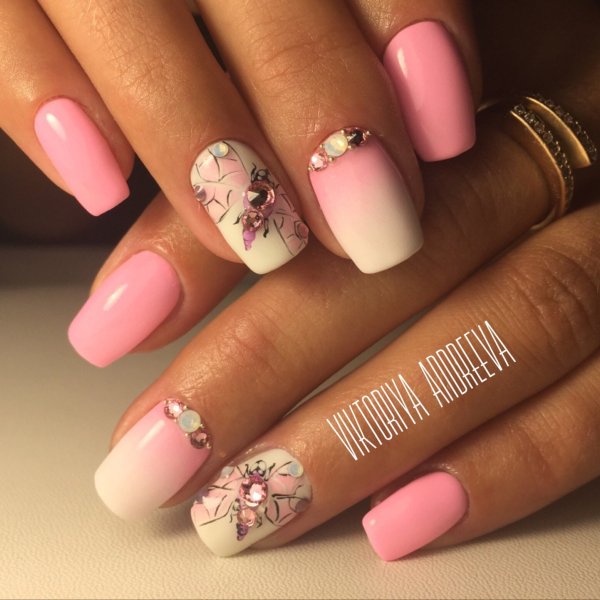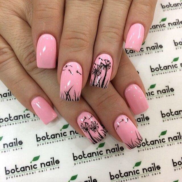 Розовые ногти с рисунком