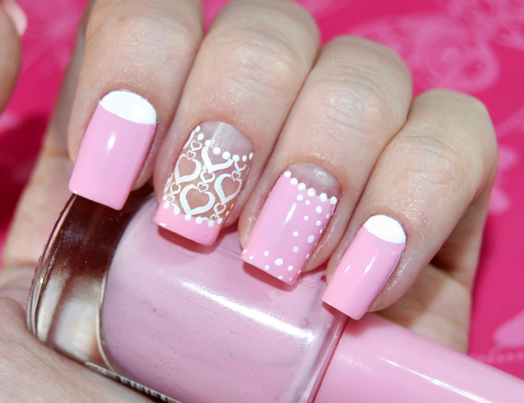 Маникюр ярко розовый с белым