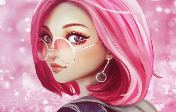 ![Девочка с розовыми волосами в очках]()