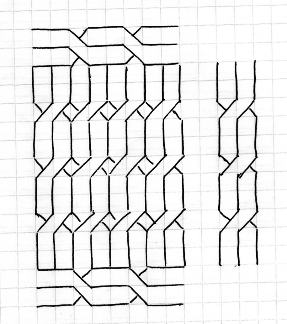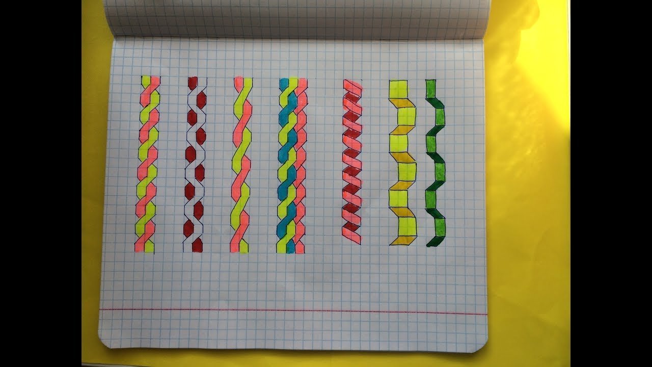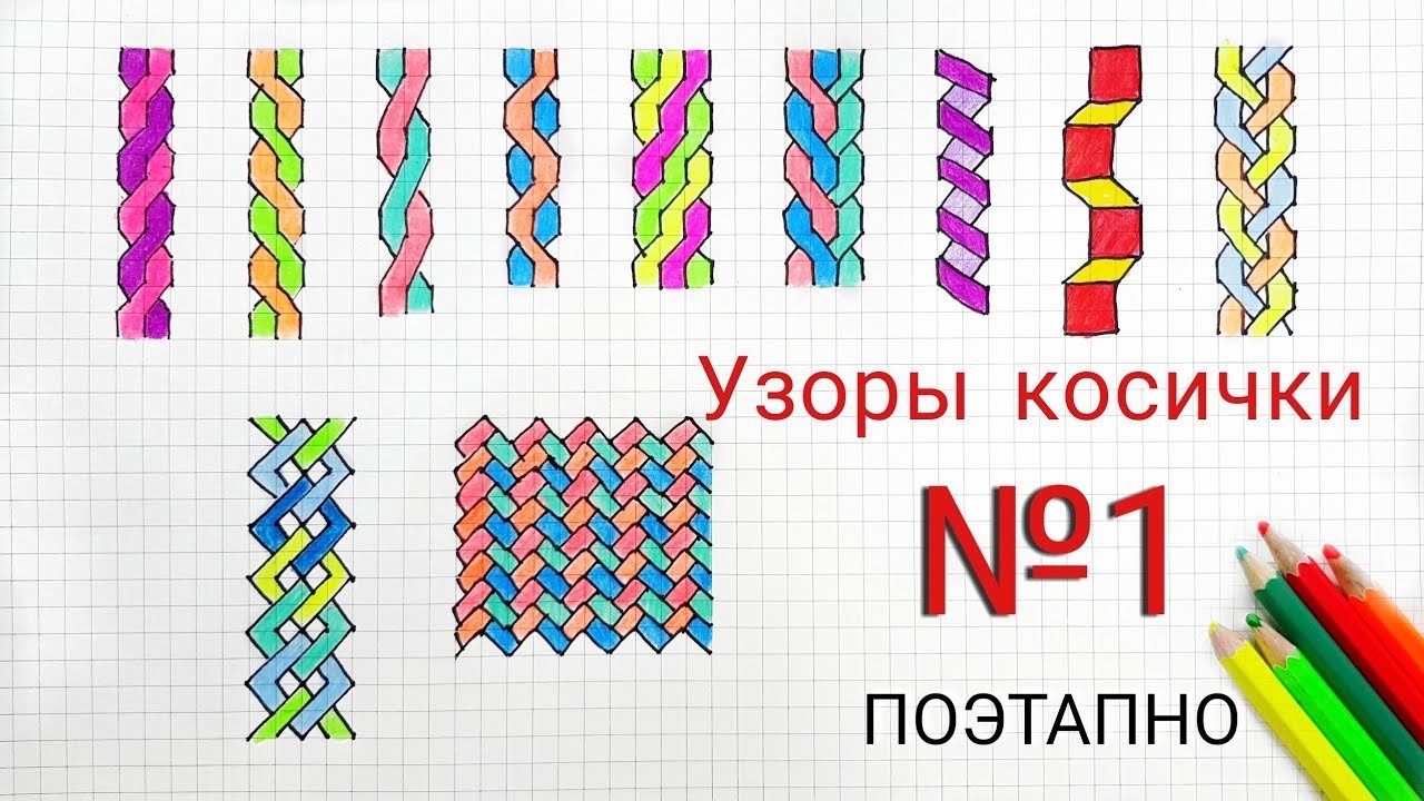 ![Узоры косички в тетради]()