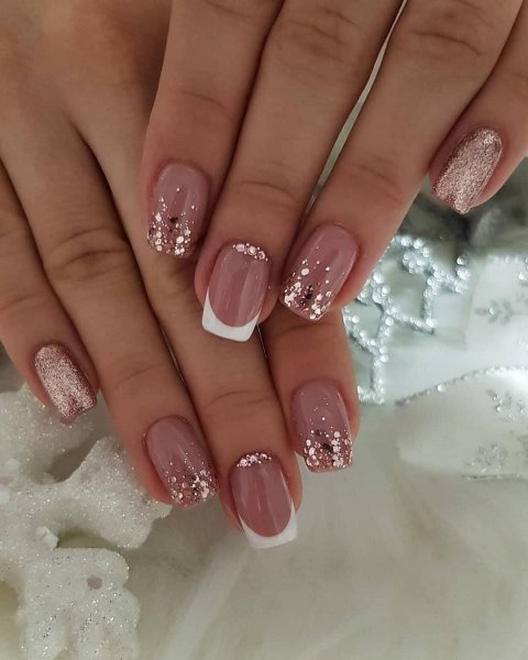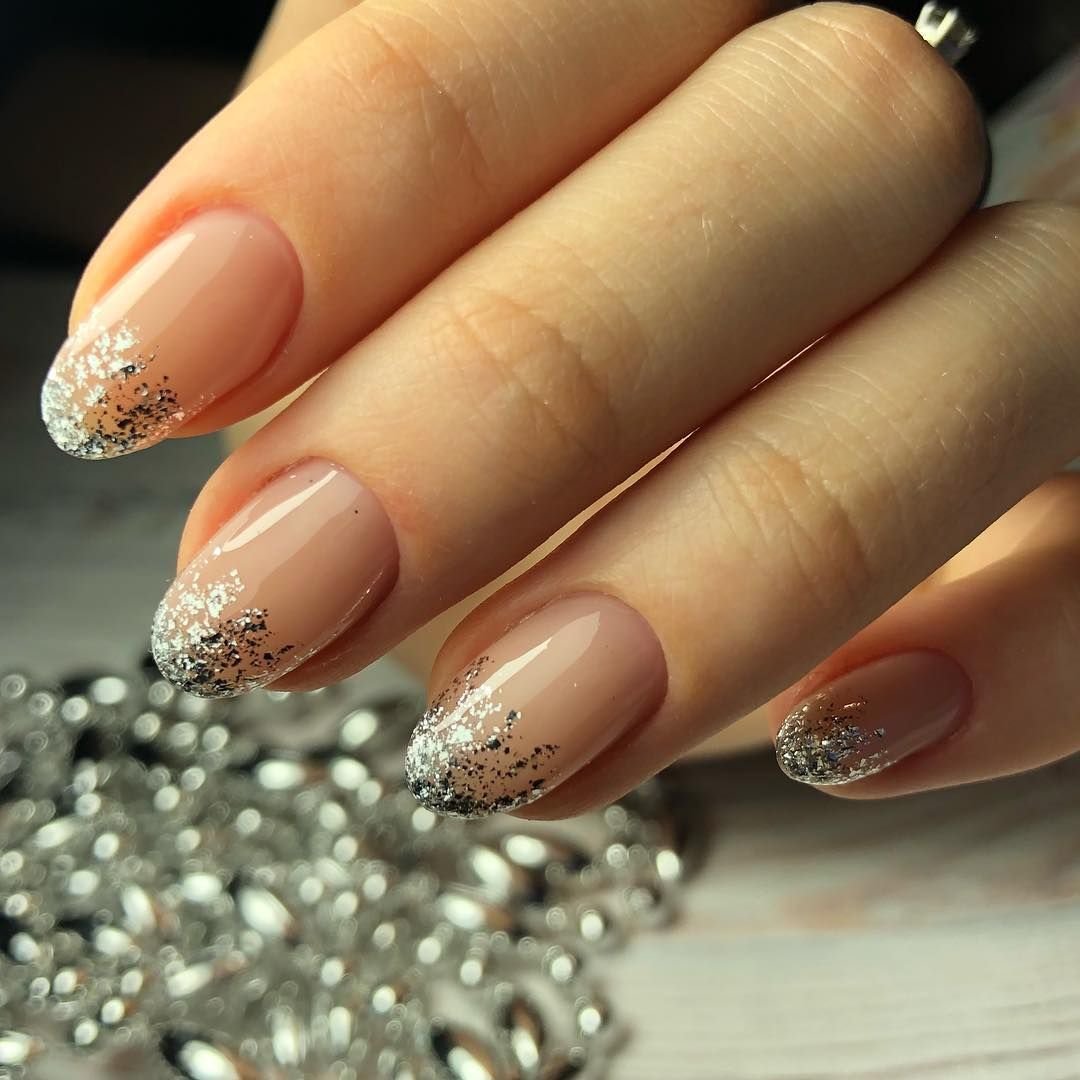 Маникюр нюдовый френч с блестками