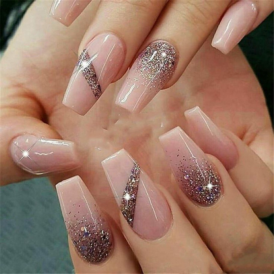 Маникюр 2022 с блестками снизу