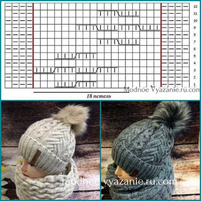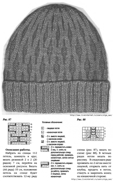 ![Вязаные шапки косами спицами со схемами и описанием]()