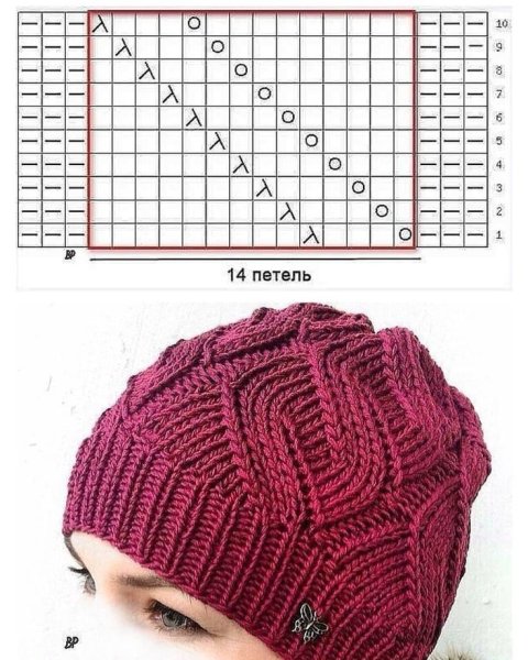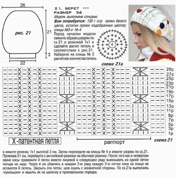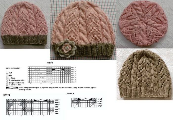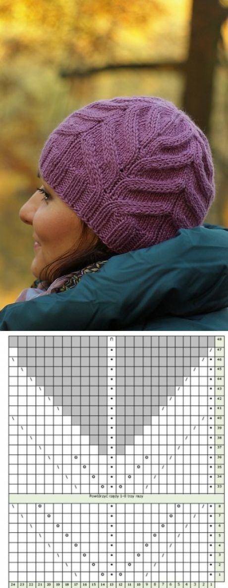 Узоры для вязания на спицах со схемами для шапок для женщин