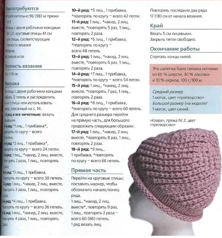 ![Вязание шапок спицами для женщин с описанием и схемами бесплатно]()
