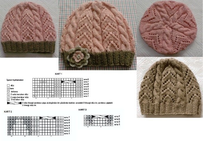 ![Узоры для вязания на спицах со схемами для шапок для женщин]()