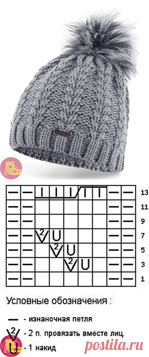 ![Вязаная шапка с помпоном спицами схема и описание]()
