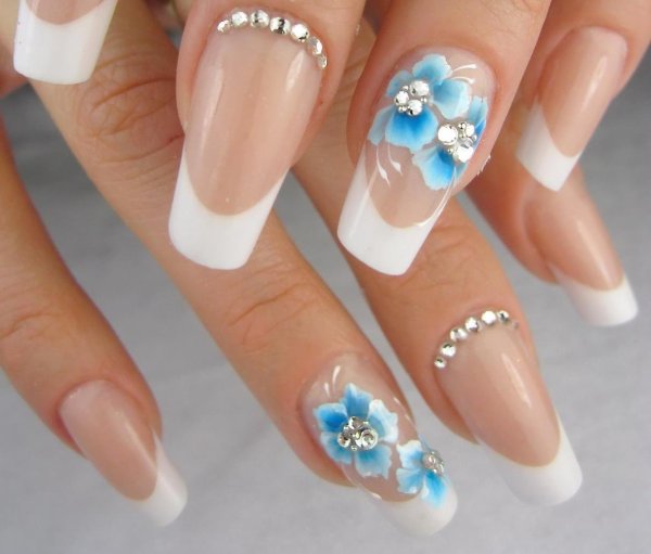 ![Маникюр с цветочками и стразами]()
