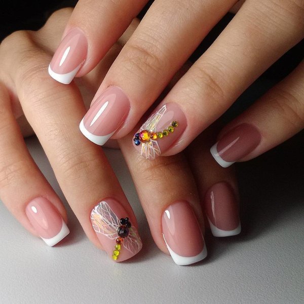 Красивый французский маникюр со стразами