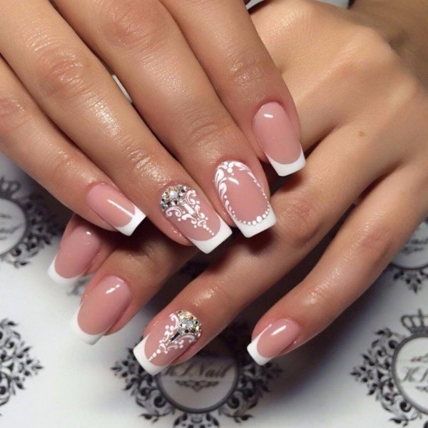 Свадебный маникюр френч со стразами