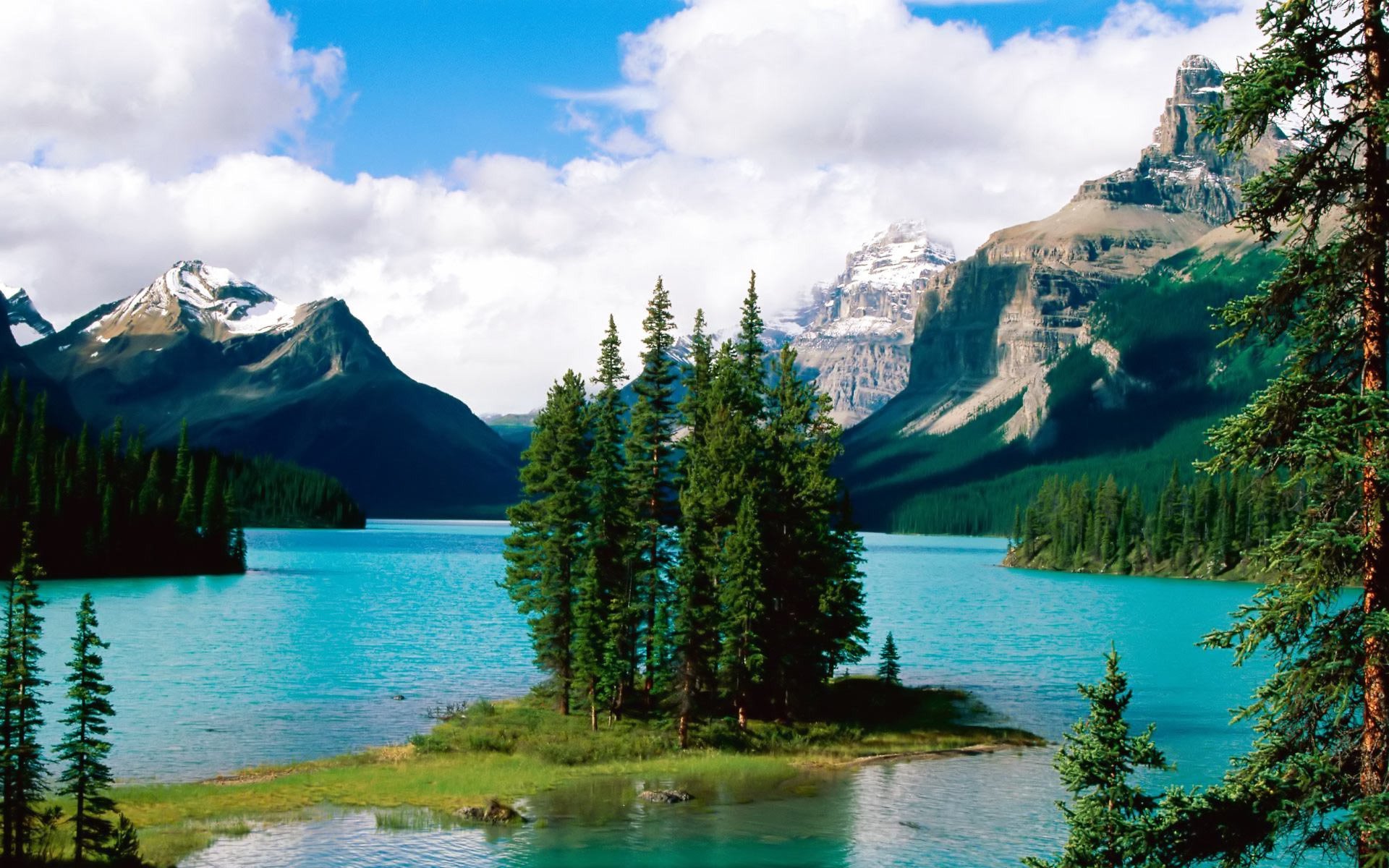 ![Озеро Морейн, национальный парк Банф, Канада]()