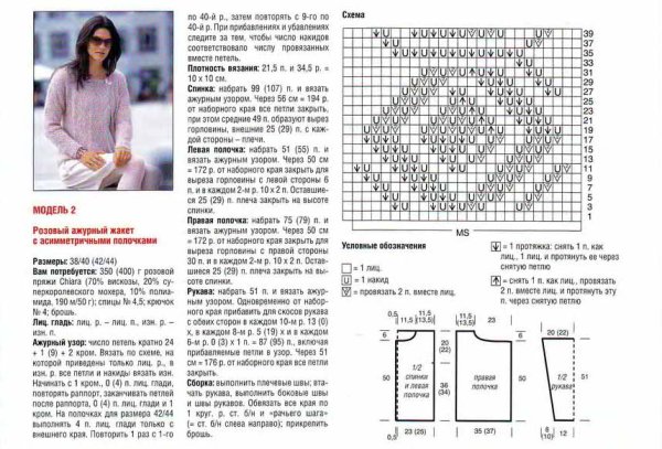 ![Вязаная ажурная кофточка спицами для женщин с описанием и схемой]()