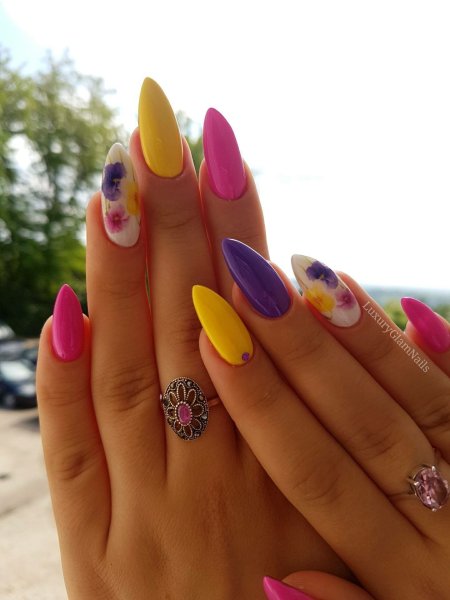 Хотите создать неповторимый образ и подчеркнуть свою индивидуальность? Тогда красивый маникюр на миндальную форму ногтей с рисунком лето – идеальное решение для вас! Эта форма ногтей отличается изящностью и элегантностью, а в сочетании с ярким и стильным рисунком, вдохновленным летней тематикой, создаст потрясающий вид. Вы можете выбрать разнообразные варианты рисунков: цветы, фрукты, морские элементы или абстрактные узоры – все зависит от вашего вкуса и предпочтений. Красивый маникюр на миндальную форму ногтей с рисунком лето поможет вам выглядеть стильно и модно, приковывая внимание окружающих.