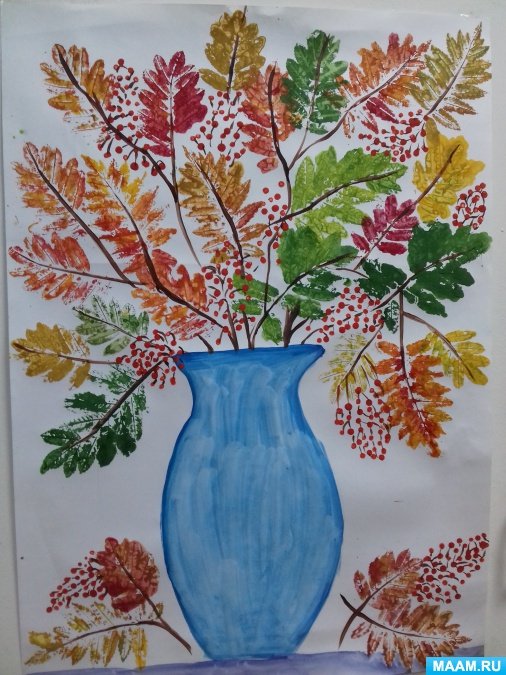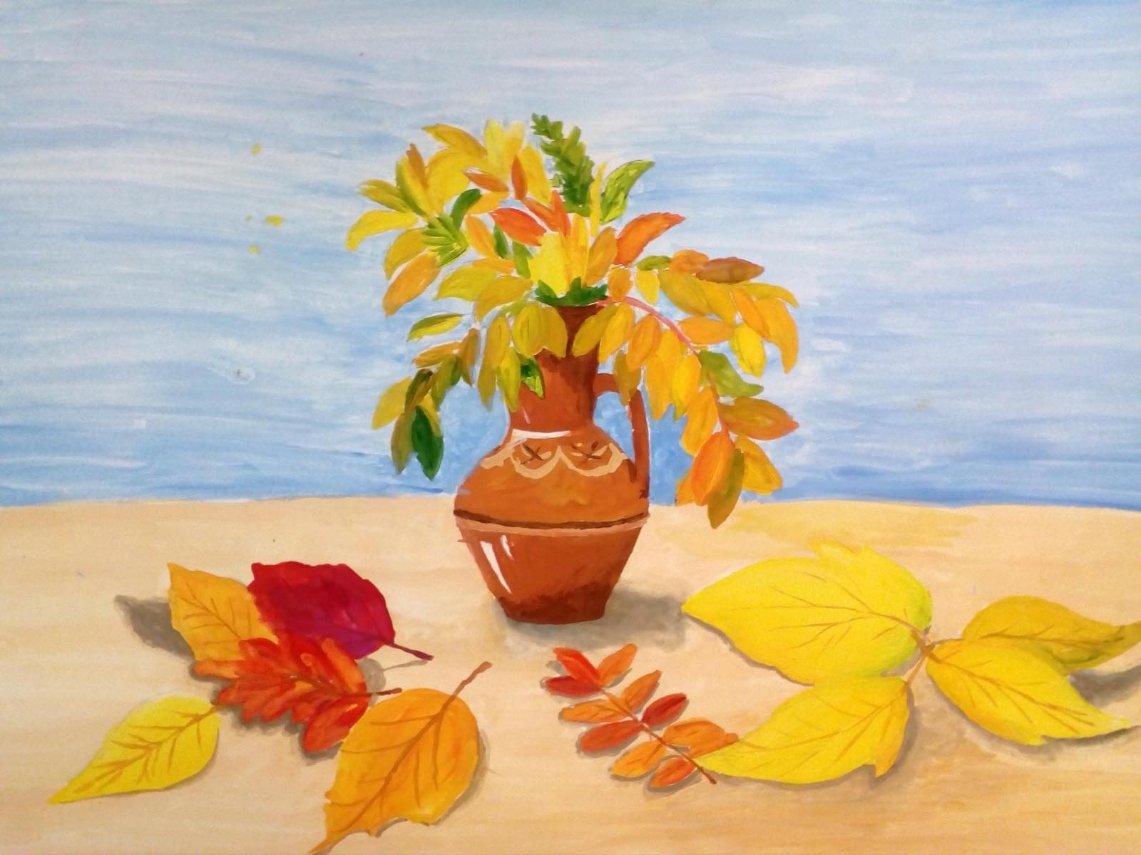 ![Рисование ваза с осенними листьями]()