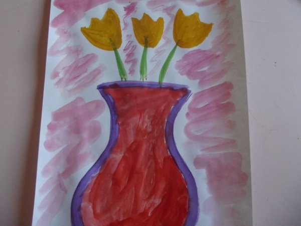 Ваза с цветами красками для детей