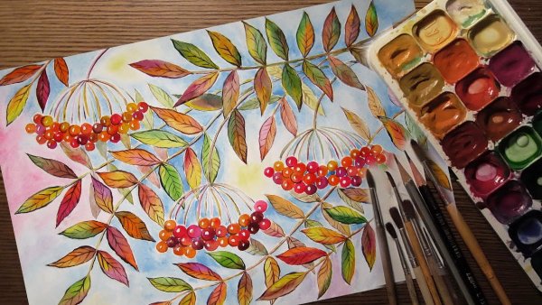 ![Рябина акварелью]()