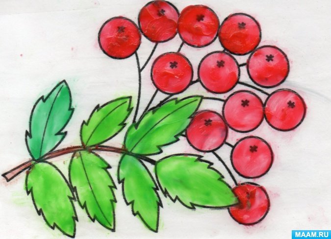 Ветка рябины рисование в подготовительной группе