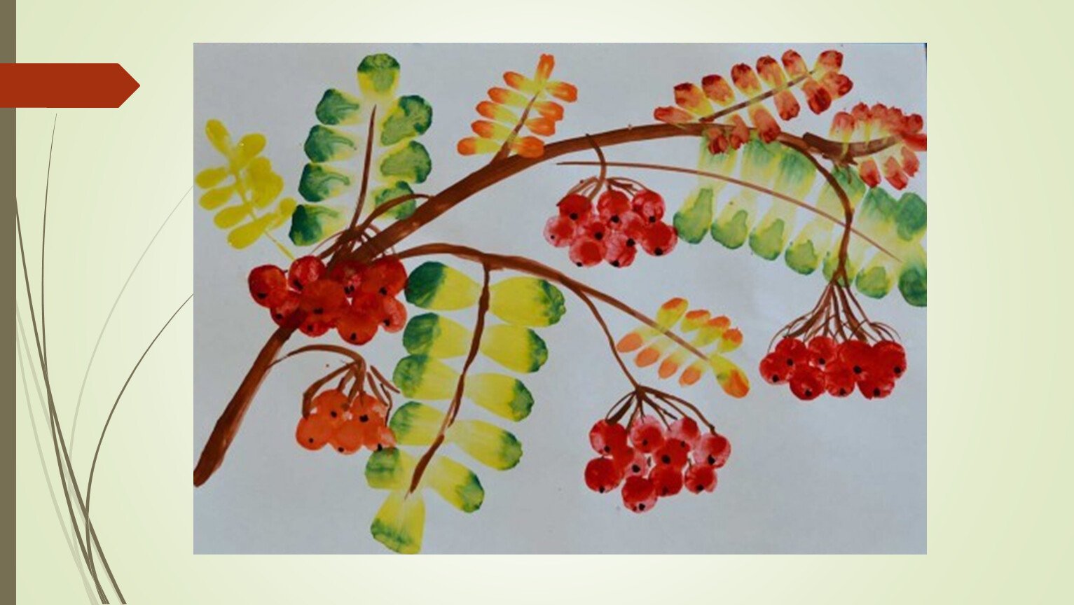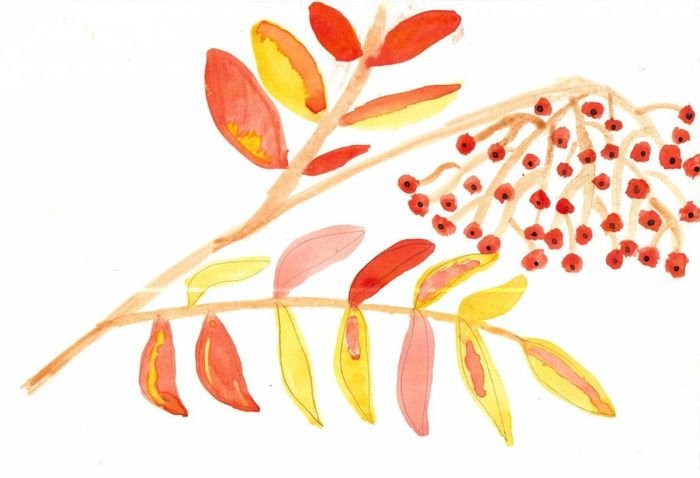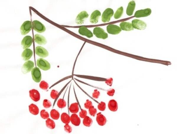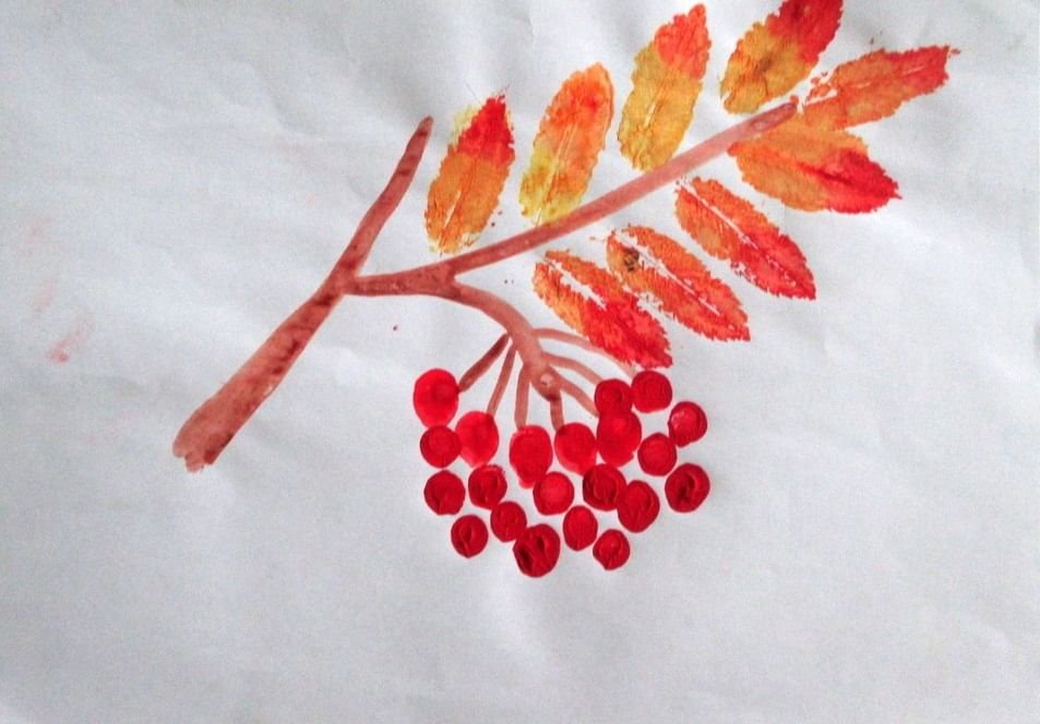 Ветка рябины в нетрадиционной технике рисования