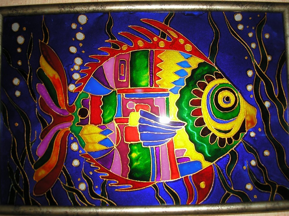 ![Роспись по стеклу витражными красками]()